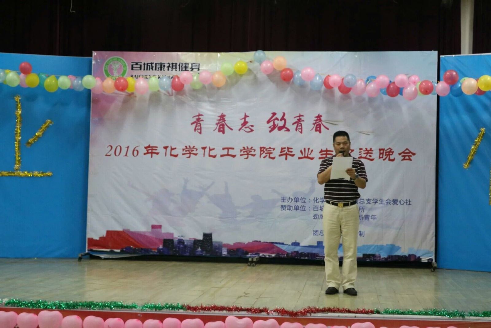 2016年6月11日晚7点30,365英国上市官网在线化学化工学院“青春志,致青春”毕业生欢送晚会在新校区明德二食堂三楼活动中心盛大举办。本次晚会历时约2小时,化学化工学院院长邓继勇,党总支书记胡爱钦、副书记张建国,学办主任吴菲及全体学工办老师应邀参加,现场座无虚席。