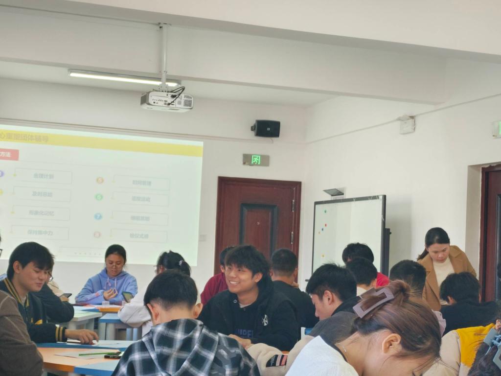 然后同学们就自己的困难学科进行原因分析、寻找方法,并进行组内成员分享、建议,黄老师对每位同学的建议进行指导,并进行总结,提出新的有效的学习方法,同学们听完后进行认真总结,并对自己每科接下来的学习进行合理规划,写下可实操的学习方法,并在组内进行宣誓,增强决心;